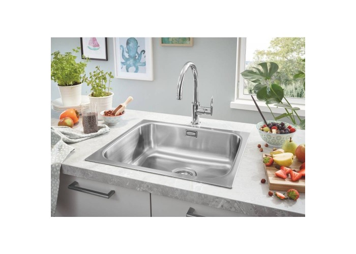 Кухонная мойка Grohe Sink 31719SD0 изготовлена из нержавеющей стали с хромированной износостойкой поверхностью, нанесенной по технологии GROHE StarLight®. Благодаря системе GROHE QuickFix установка мойки в столешнице не займет много времени и не потребует дополнительного оборудования. Мойка выполнена в виде чаши с отверстием слив-перелив. Изоляция GROHE Whisper на нижней части мойки уменьшает шум.
