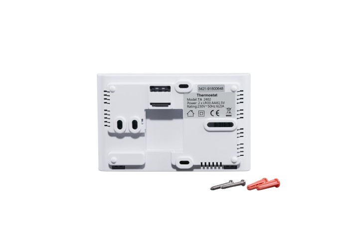 Недельный программируемый термостат Thermo Alliance ТА-2402 подключается к котлу с помощью кабеля и управляет процессами включения/отключения отопительного прибора по "Сухому Каналу". Блок комнатного термостата используется в качестве графического интерфейса пользователя для определения и контроля температуры в помещении. Поскольку расстояние от комнатного термостата до котла в разных помещениях будет отличаться, кабель подключения не входит в комплект поставки продукции.