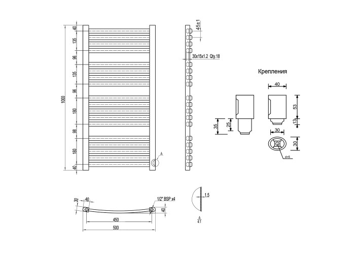 Полотенцесушитель, кран Маевского, заглушка металлическая, крепления.