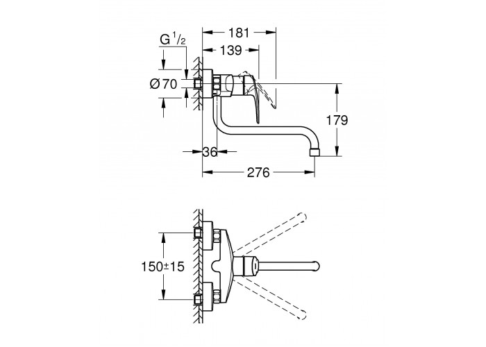 Смеситель для кухни для настенного монтажа Grohe Eurosmart New (32224003)