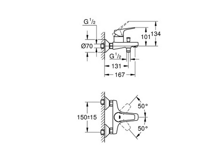Смеситель для ванны Grohe BauEdge 23756000 выполнен из латуни и имеет хромированную сияющую поверхность, которая устойчива к образованию коррозии, загрязнениям и истиранию. Вышеперечисленные характеристики изделия гарантируют его долговечность. Для включения подачи воды смеситель оснащен удобным рычагом с нанесенной маркировкой Х+Г воды, а для переключения на душ - вытяжным дивертором и выходом для подключения душевого шланга. Круглые розетки скроют погрешности настенного монтажа.