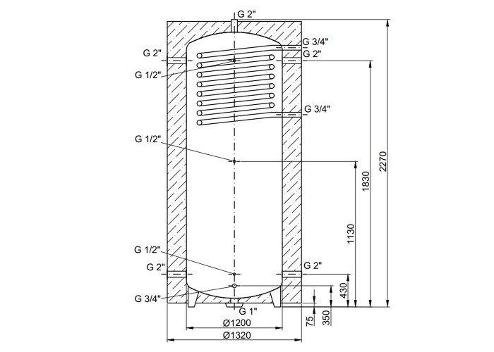Диаметр подключения теплообменника (верх.)