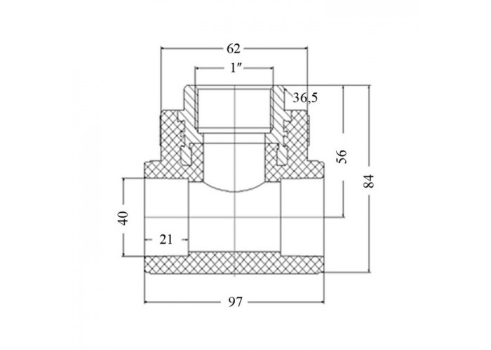 Тройник PPR Blue Ocean 40х1"х40 ВР — решение для соединения двух отрезков трубопроводов из разных материалов, подключения различных резьбовых устройств: шаровых кранов, регулирующих вентилей, фитингов и др. Вставка выполнена из латуни, ее резьба — внутренняя, 1 дюйм. Два других конца — под полифузную пайку. Для их подсоединения нужен специальный паяльник с насадками. Максимальная температура рабочей среды при эксплуатации изделия составляет 90 градусов Цельсия, PN25.
